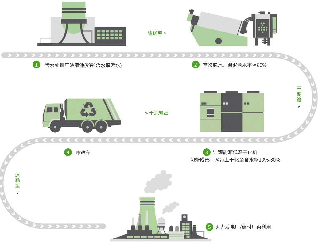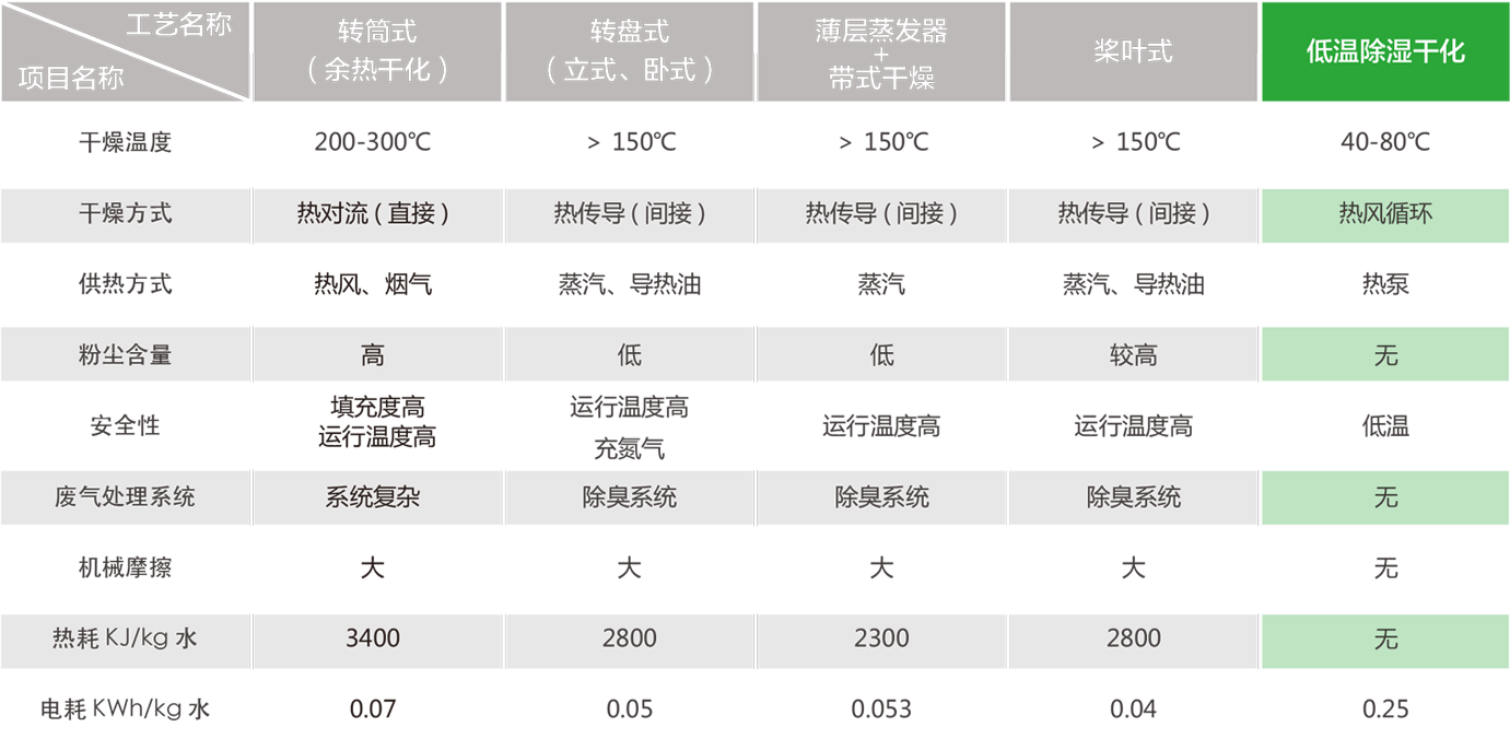 傳統(tǒng)污泥熱干化系統(tǒng)供熱量90%轉(zhuǎn)化成排風(fēng)熱損失(水蒸汽潛熱及熱空氣顯熱);